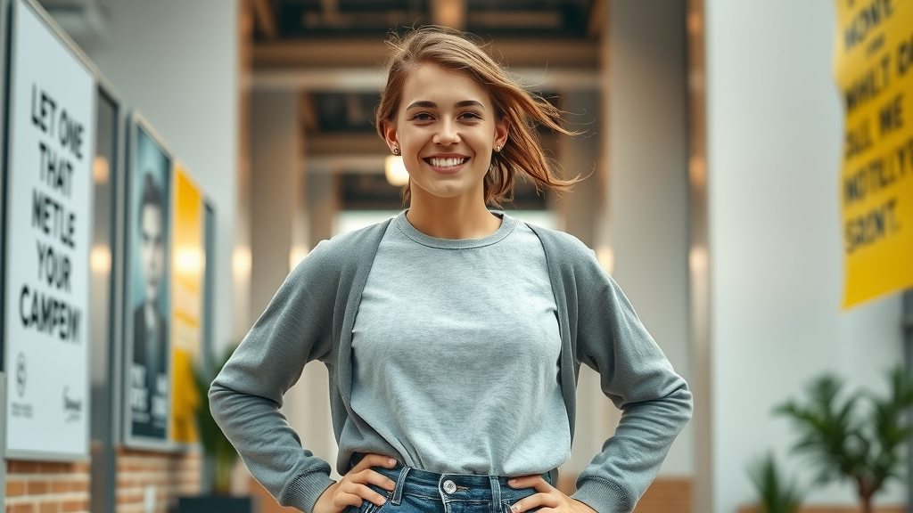 Optimistic young adult demonstrating confidence building techniques through confident body language in an urban setting